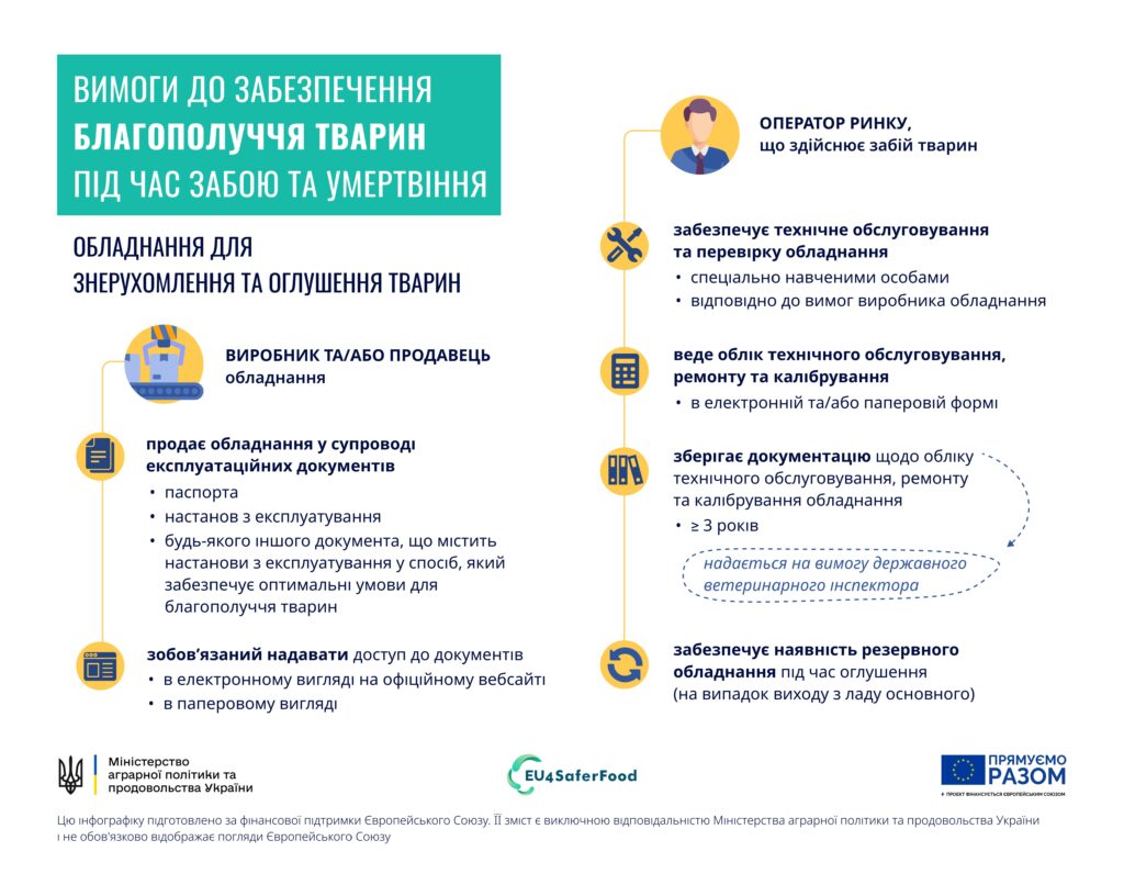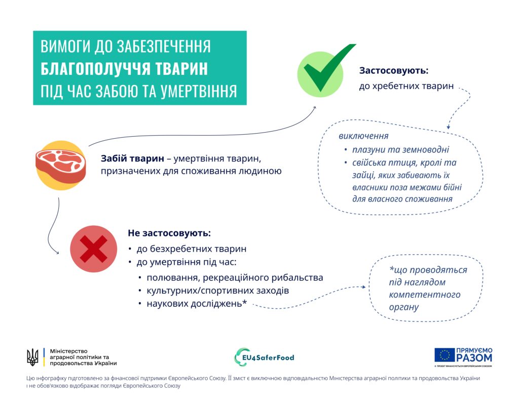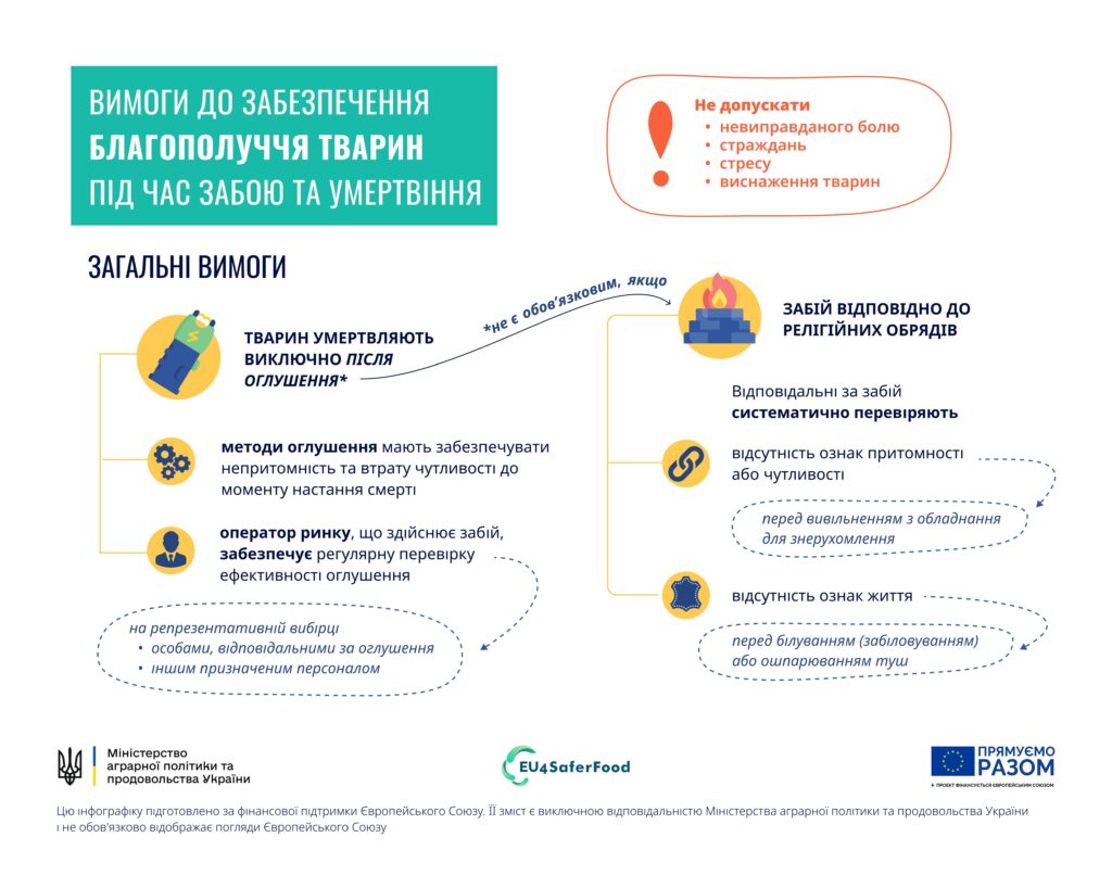 • Вимоги до забезпечення благополуччя тварин під час забою та умертвіння