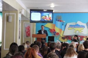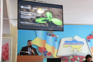 Експерти ФАО презентували студентам навчальний посібник ” Пліч-о-пліч заради покращення якості продовольства та кращого майбутнього”, який допомагає дітям і підліткам розуміти як функціонують продовольчі системи: як вирощуються овочі та фрукти, чому важливо берегти воду, підтримувати фермерів і не марнувати продовольство.