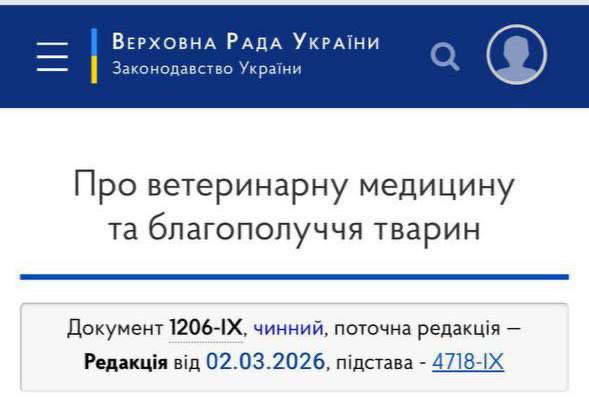 Повідомляємо, що в Україні введено в дію Закон №1206-IX «Про ветеринарну медицину та благополуччя тварин». Документ передбачає комплексне оновлення підходів у сфері охорони здоров’я тварин, їх утримання, ветеринарної практики, а також виробництва й обігу ветеринарних препаратів та побічних продуктів тваринного походження.