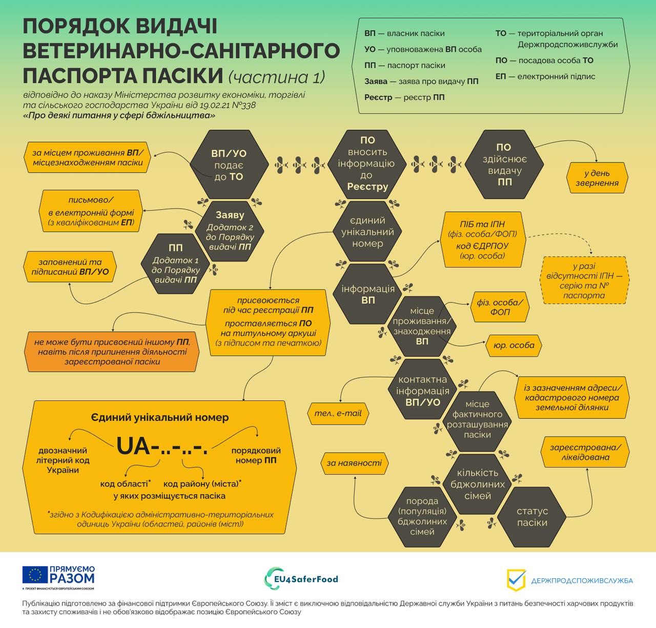 Детальніше як здійснюється оформлення ветеринарно-санітарного паспорта пасіки у спільних інфографіках з європейським проєктом EU4SaferFood.