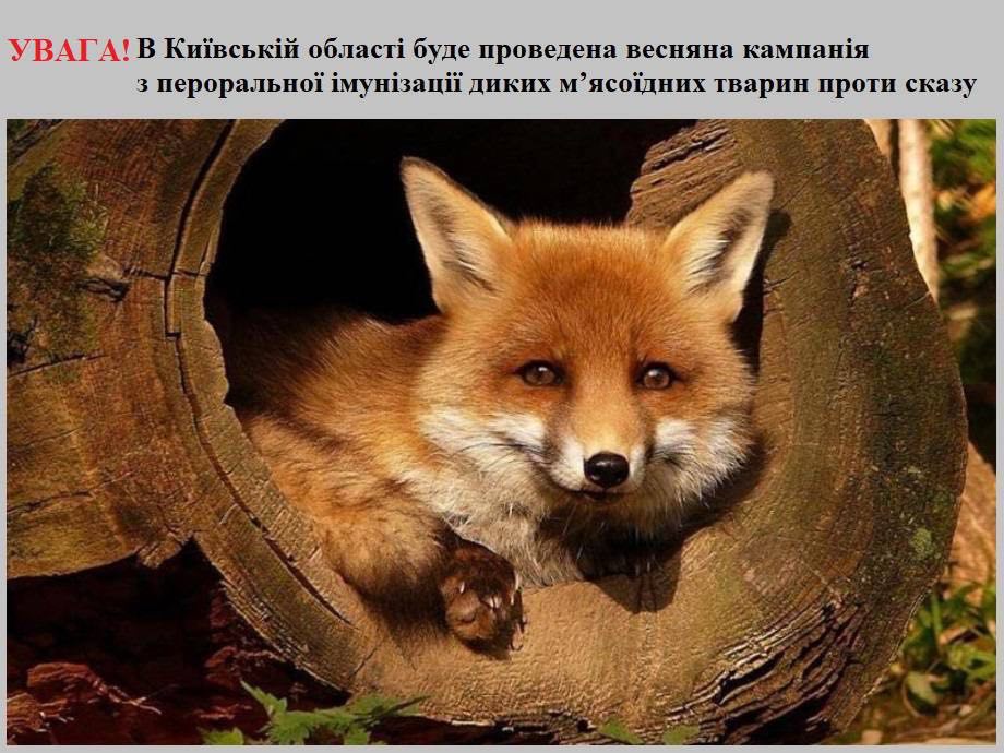 На Київщині, для імунізації диких тварин від сказу, буде використано пероральну вакцину українського виробника ТОВ «Укрветпромпостач»(м. Бровари).